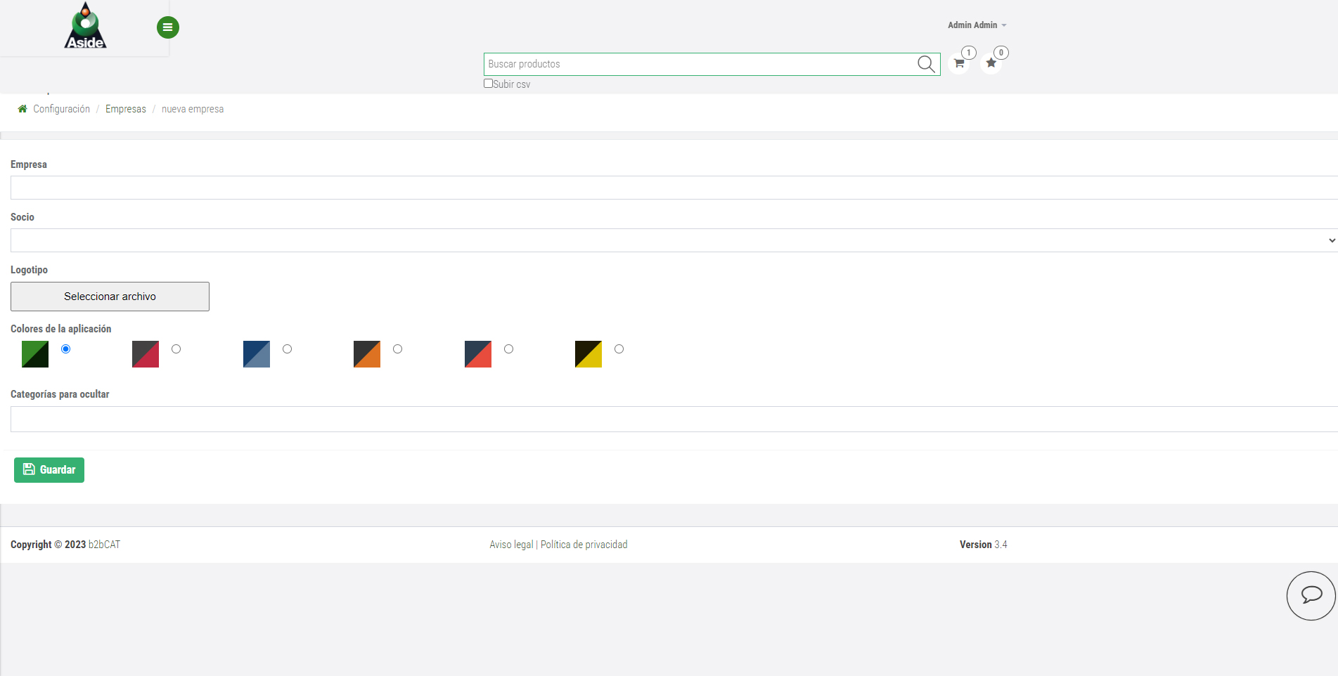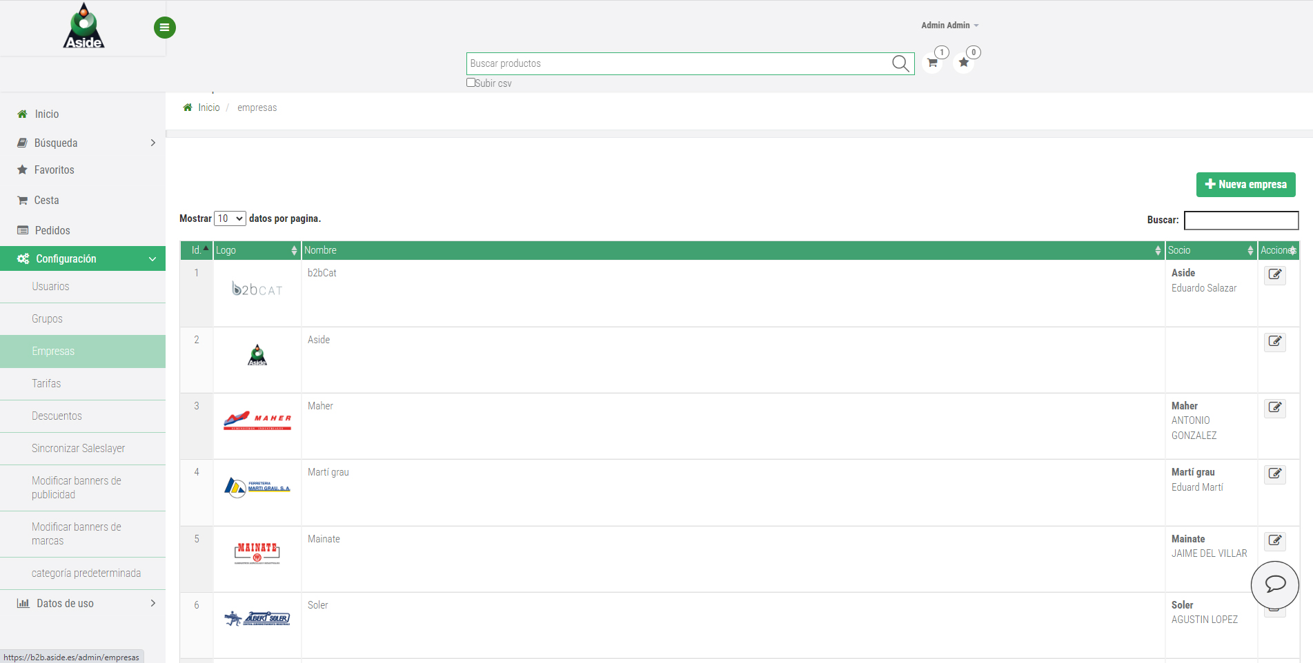 El usuario Adminstrador puede desde este menú crear nuevos socios y empresas.