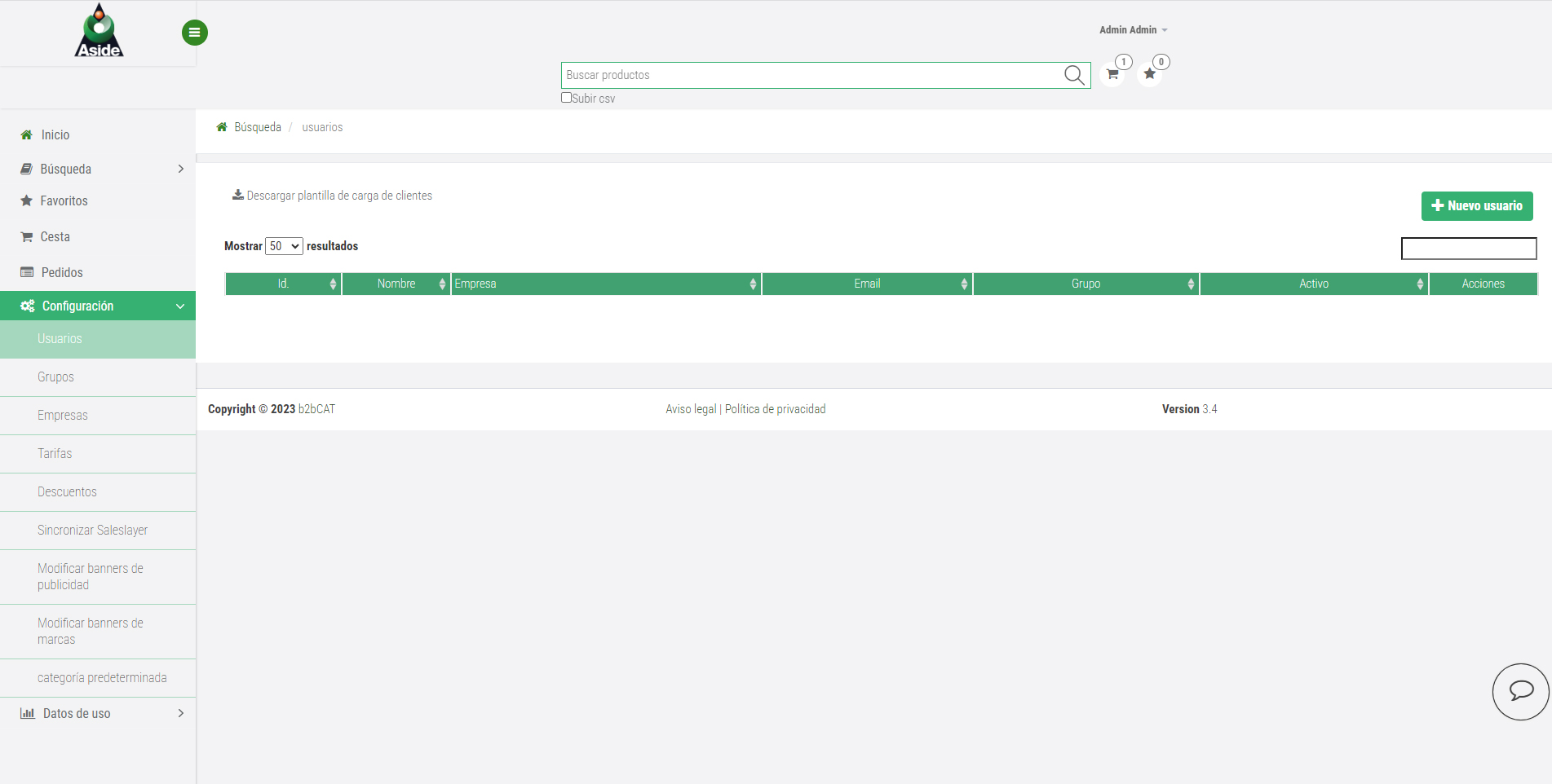 Para crear un usuario Socio debe estar previamente creada su Empresa. Desde el menú accedemos a: Configuración > Empresas.