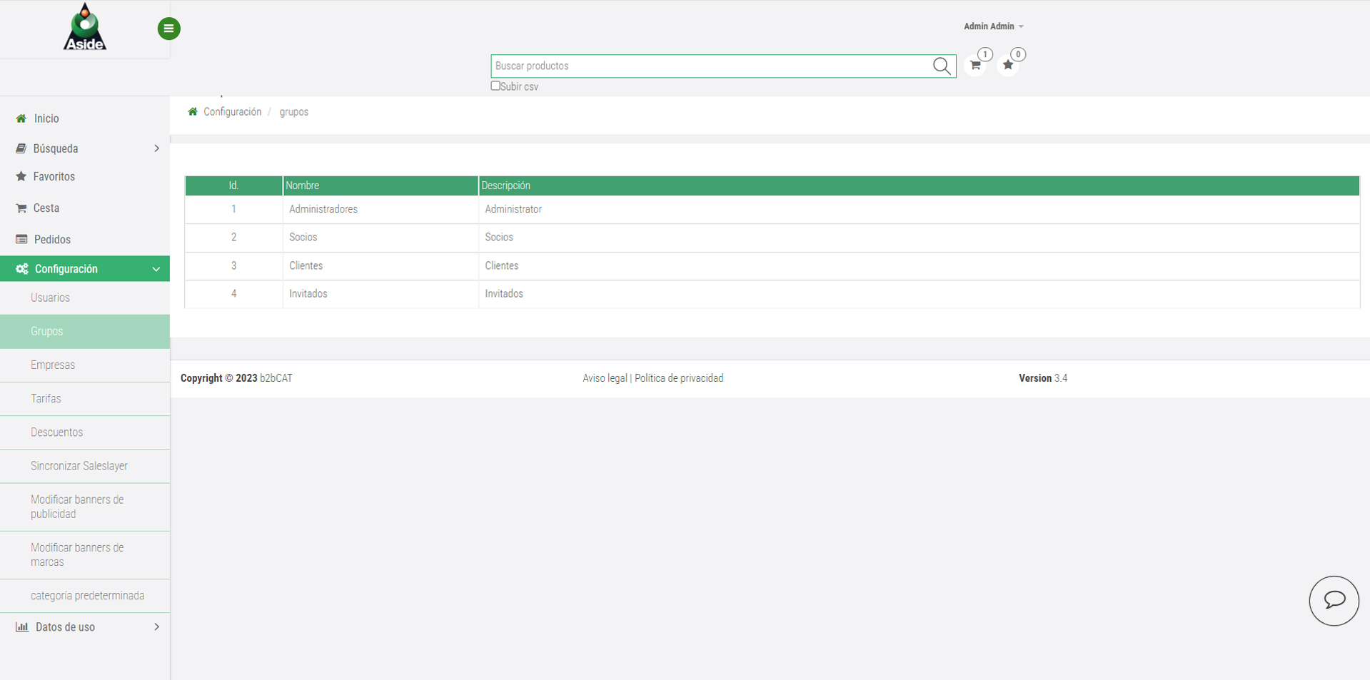 Grupos: No pueden modificar ni crear contenido en esta sección, pero si visualizar la información sobre que tipo de usuarios hay en el sistema. Vemos los 4 tipos de roles que ahí: administradores, socios, clientes e invitados.