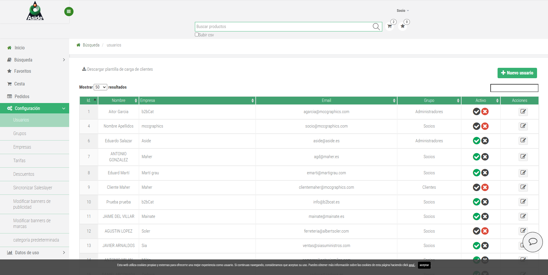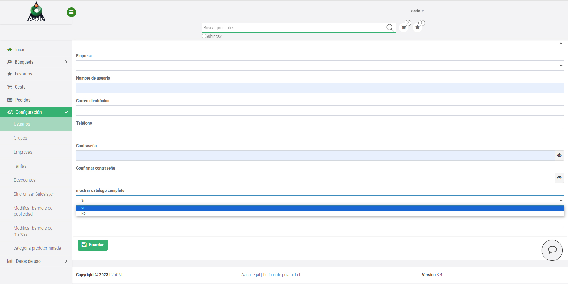 Esta opción permite a los clientes ver el catálogo completo. Para asignar estar opción, el usuario Administrador o usuario Socio debe dar este permiso al crear o editar un nuevo usuario.