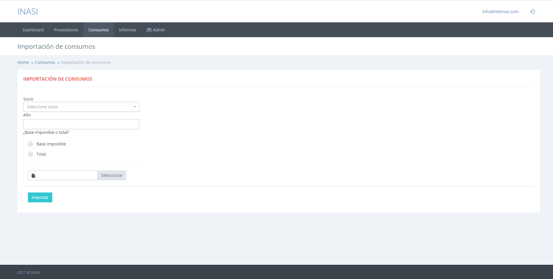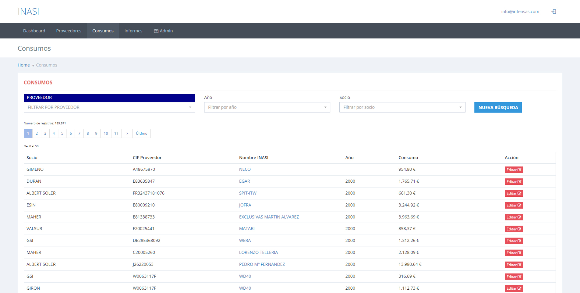 Toda la información de la plataforma Inasi sobre los Proveedores, está alojada en OwnCloud. Desde ahí se enlaza a la plataforma. Puede editarse, como hemos visto manualmente, desde la página de consumos accediendo al consumo del Proveedor de cada Socio concreto.
